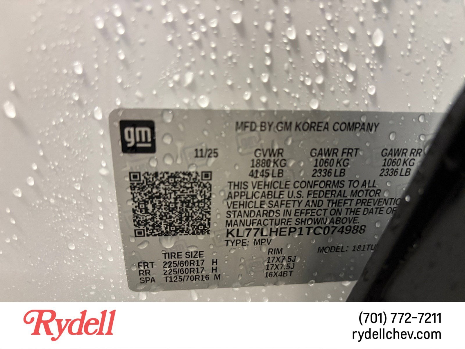 - Tires, 225/60R17 all-season, blackwall