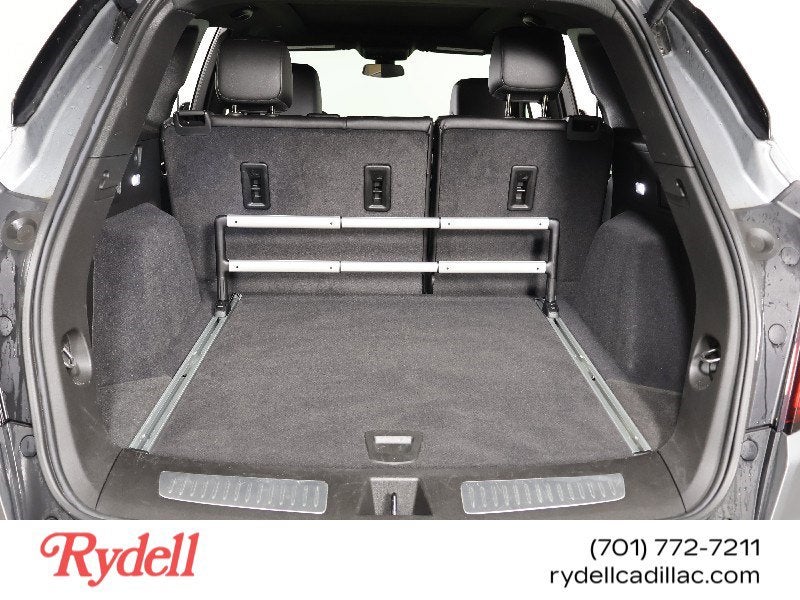 - Opens or closes when the system senses the key fob and the driver extends their foot under the left-hand side of the rear bumper over an image of the Cadillac Crest projected under the vehicle